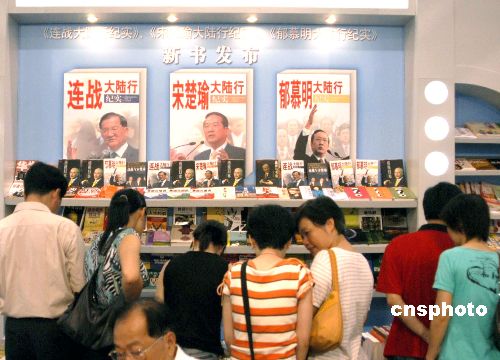 七月三十日,在廈門舉行的海峽兩岸圖書(shū)交易會(huì)上,《連戰(zhàn)大陸行紀(jì)實(shí)》、《宋楚瑜大陸行紀(jì)實(shí)》、《郁慕明大陸行紀(jì)實(shí)》三本新書(shū)一發(fā)布就受到市民的廣泛關(guān)注。作者:王東明