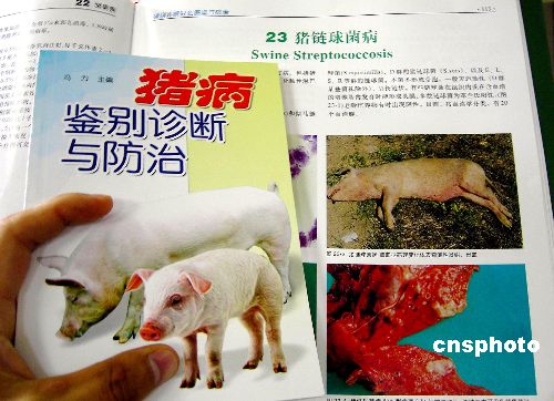 | 7月26日,針對四川資陽市、內(nèi)江市資中縣發(fā)生豬鏈球菌病疫情,農(nóng)業(yè)部專家組成員、中國工程院院士陳煥春稱,豬鏈球菌病可以防治。目前有關(guān)部門篩選了18種高敏抗生素如青霉素G、先鋒霉素等,積極防治豬鏈球菌病,已取得了一定療效。廣東正生產(chǎn)針對豬鏈球菌病的特效疫苗,不久后將進(jìn)入四川資陽市、內(nèi)江市資中縣進(jìn)行防治。據(jù)悉,豬鏈球菌病屬于國家規(guī)定的二類動物疫病,是一種人畜共患的傳染病。鏈球菌分布廣泛,常存在于健康的哺乳動物和人體內(nèi),在動物機(jī)體抵抗力下降和外部環(huán)境變化的誘導(dǎo)下,會誘發(fā)動物和人發(fā)病。目前沒有證據(jù)證明豬鏈球菌可以通過人的消化道感染人。圖為湖北宜昌市新華書店內(nèi),讀者在查看有關(guān)豬鏈球菌病防治的讀物。作者:劉君鳳