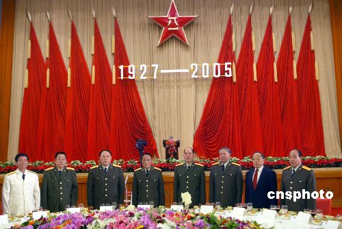 中新社北京七月三十一日電(記者陶社蘭)中國(guó)國(guó)防部今天在北京人民大會(huì)堂舉行盛大招待會(huì),慶祝中國(guó)人民解放軍建軍七十八周年,中央軍委副主席、國(guó)務(wù)委員兼國(guó)防部長(zhǎng)曹剛川向人民解放軍、武警部隊(duì)、預(yù)備役軍人和廣大民兵致以節(jié)日祝賀。