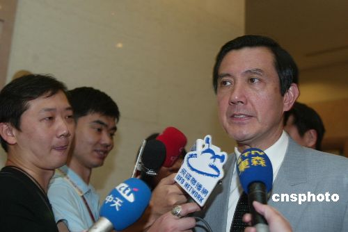 八月一日,中國國民黨主席連戰(zhàn)與新當選的國民黨主席馬英九在臺北會面。作者:盛佳鵬