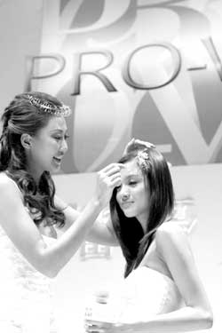 中新網(wǎng)8月2日電 北京娛樂信報(bào)消息,7月29日,在國內(nèi)某知名洗護(hù)發(fā)品牌的新品發(fā)布會上,名模謝東娜率領(lǐng)著模特春曉、戴小奕、王瀟、張?zhí)氐仍诰┭堇[了一場精彩的秀發(fā)搭配美鉆的發(fā)型秀。而受傷的臺灣名模林志玲也透過大屏幕送上問候。