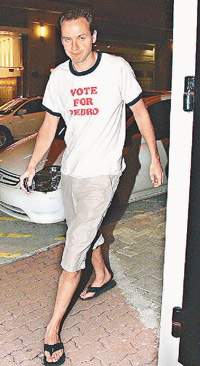 另一邊,“老外新歡”于前晚九時(shí)左右,由所住大廈的走火通道極速步出,然后截的士離去,守候記者未能跟上,傳媒猜測(cè)他會(huì)否到半島酒店會(huì)合柏芝,不過(guò)“老外”所乘之的士后來(lái)折返兜客,司機(jī)向記者透露“老外”于中環(huán)云咸街下車(chē),至十時(shí)四十分,一身街坊look,穿上T恤短褲配拖鞋的“老外”由正門(mén)步行回家,他回家時(shí)間與柏芝極為合拍,面對(duì)傳媒拍照他亦神態(tài)自若,還與管理員以普通話(huà)打招呼,難怪他可以當(dāng)柏芝的英文老師!不過(guò)記者問(wèn)他:“同柏芝談戀愛(ài)多久了?”他卻不發(fā)一言就急步入大廈。昨晚七時(shí),他召了部的士由寓所出發(fā)往機(jī)場(chǎng),沿途欲擺脫記者追訪(fǎng)不果,抵達(dá)機(jī)場(chǎng)后,記者問(wèn)他是否跟柏芝一同出埠及去哪?他一概不回應(yīng)就入閘離開(kāi)。但柏芝經(jīng)理人表示柏芝人在香港,在家中休息。
