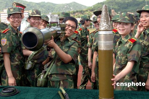 三日,“澳門青年學生軍事夏令營”在駐澳部隊珠;嘏e行開營儀式,這是澳門特別行政區(qū)政府與解放軍駐澳部隊首次共同舉辦的軍事夏令營。軍訓中女學員扛起98式反坦克火箭連用發(fā)射器“有型有款”。作者:梁永強
