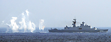 據(jù)報道,昨天的?章(lián)合操演假想解放軍以突擊、封鎖及?展舴绞剑鈭D封鎖臺左營與高雄港,阻斷臺對外交通。臺海軍艦只緊急出港,港內(nèi)部隊實施要地防空。此時,模擬解放軍戰(zhàn)機臨空,臺軍各艦及港內(nèi)防空飛彈、火炮,皆啟動接戰(zhàn)。