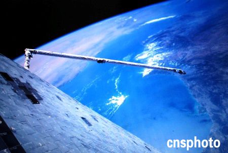 發(fā)現(xiàn)號(hào)宇航員羅賓遜歷史性的自拍照,鏡頭后面是修復(fù)一新的航天飛機(jī)腹部。作者:羅賓遜