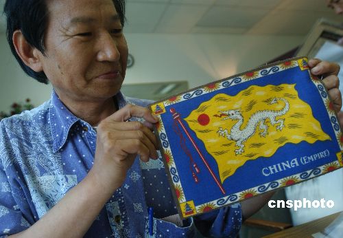 旅美華人美術(shù)教授喬文安七月底展示他收藏的美國珍貴煙標(biāo),它是一百多年前美國煙草公司特意為出口中國的精品而設(shè)計,專用絲織的白龍黃旗下注明:“中國皇家”,為中美經(jīng)貿(mào)歷史的證物。作者:賈國榮