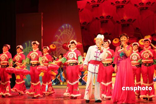 八月六日晚,山西太原舉行紀(jì)念中國人民抗日戰(zhàn)爭暨世界反法西斯戰(zhàn)爭勝利六十周年山西民歌演唱會《在太行山上》。來自山西省內(nèi)各地的藝術(shù)家及民間歌手會聚一堂,用山西人最熟悉的音樂一路牽引人民的思緒,重回六十年前的那段光輝歲月。圖為民歌《掛紅燈》。作者:張云