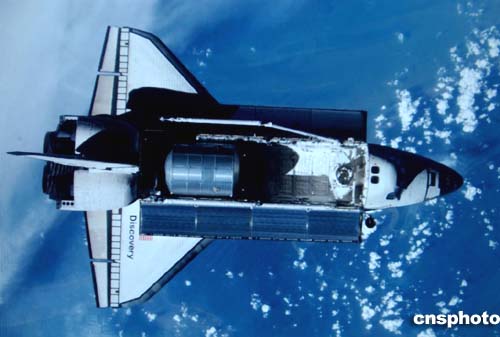 美國(guó)航天飛機(jī)“發(fā)現(xiàn)號(hào)”繼續(xù)在回家之路的軌道上遨游。(NASA)