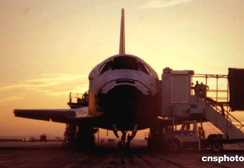 發(fā)現(xiàn)號于美國西部時(shí)間凌晨五時(shí)十二分安全降落在加州愛德華茲空軍基地,它十四天繞地球飛行二百一十九圈,行程五百八十萬英里。