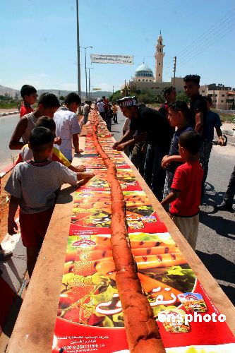 8月10日,在巴勒斯坦杰寧,廚師們正在制作一根長750米的三明治,以圖打破吉尼斯世界紀(jì)錄。作者:Ic/cnsphoto