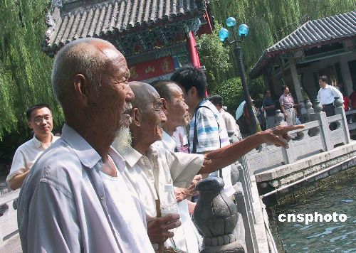 8月12日,為了慶?箲(zhàn)勝利60周年,在山東省民政部門的組織下來自全省各地的十幾位老八路聚集濟南,暢游趵突泉美景。老戰(zhàn)友們六十年后重相聚,在一起觀看美麗的泉城風(fēng)光,追憶過去抗戰(zhàn)的歲月,重游戰(zhàn)斗過的地方,個個心潮澎湃。作者:周青先