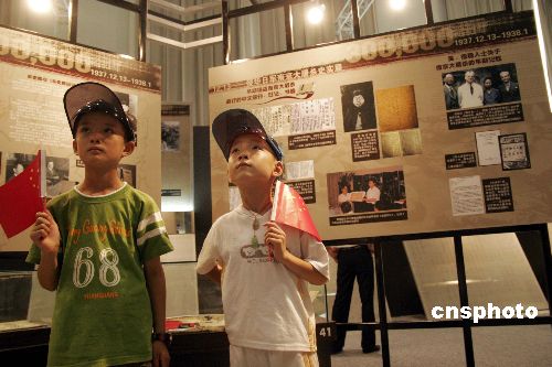 8月10日,兩位小朋友在參觀“12·13———侵華日軍南京大屠殺史實展”。這場以“愛國、正義、和平”為主題,反映南京大屠殺史實的展覽在中國國家博物館舉行。此次展覽是中國抗日戰(zhàn)爭暨世界反法西斯戰(zhàn)爭勝利60周年紀(jì)念活動的一部分,80%以上展品都是首次面世。展覽由江蘇省委、省政府主辦,免費對公眾開放,計劃展期20天。作者:陳曉根