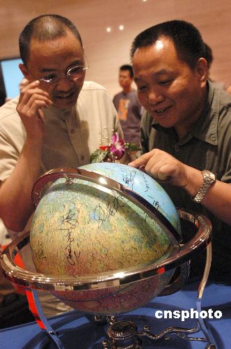 用于科研和廣大科學(xué)愛好者使用、明確標(biāo)志月球表面地形構(gòu)造和地域署名的,中國第一個“月球儀”,八月十五日在北京市中華世紀(jì)壇舉行的,中國“2005年月球探測工程標(biāo)識征集活動啟動儀式”發(fā)布會上亮相!霸虑騼x”由中科院月球探測中心制作。中國月球探測工程又稱“嫦娥工程”,分“繞”、“落”、“回”三期,由長征三甲火箭擔(dān)綱,分別在2007年前、2012年前、2017年前后發(fā)射!版隙鹨惶枴保–H-1)衛(wèi)星,選用東方紅3號(DFH-3)衛(wèi)星平臺。作者:鄒憲