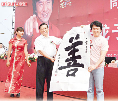 在主持奠基儀式的時(shí)候,成龍竟一度眼泛淚光。儀式期間,有一位小妹妹沖破公安人墻,趨前欲向成龍索取簽名,但遭工作人員阻攔,成龍見狀即發(fā)揮愛心,自愿替該女孩在背部簽名。