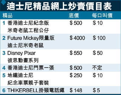 中新網(wǎng)8月17日電 據(jù)香港文匯報(bào)報(bào)道,“迪斯尼熱”席卷海峽兩岸,由16日起展開的18場總彩排門票已在網(wǎng)上違法熱炒至每張500至千元還多(迪斯尼曾以195元公開售票——本網(wǎng)注),有關(guān)香港迪斯尼的精品也“出價(jià)高,叫價(jià)好”。