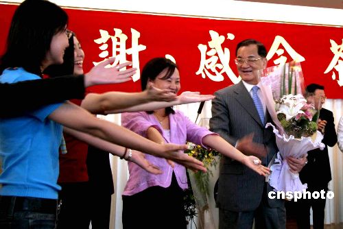 國民黨的黨員和黨工今天特地為連戰(zhàn)準(zhǔn)備了鮮花和美味茶點,并用擁抱、親吻和掌聲表達(dá)對連戰(zhàn)的依依不舍。