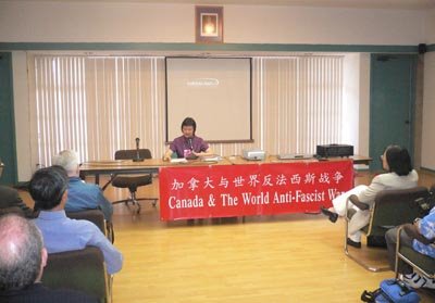 圖片展期間,中國(guó)總領(lǐng)館邀請(qǐng)有關(guān)學(xué)者和卑詩(shī)省抗日戰(zhàn)爭(zhēng)史實(shí)維護(hù)會(huì)的負(fù)責(zé)人舉辦三場(chǎng)抗戰(zhàn)史實(shí)講座,主題是《加拿大與世界反法西斯戰(zhàn)爭(zhēng)》。中新社記者呂振亞攝