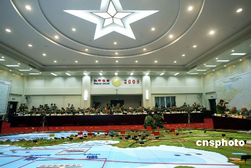 8月22日,中俄軍事演習(xí)指揮大廳正在進(jìn)行最后的戰(zhàn)役部署工作。23日將開(kāi)始軍事演習(xí)第三階段——戰(zhàn)術(shù)實(shí)施階段的演習(xí)。圖為中俄聯(lián)合軍事演習(xí)指揮大廳的工作場(chǎng)景。作者:王麗南