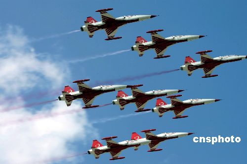 F1大獎賽土耳其站正式比賽結(jié)束21日晚。邁凱輪車隊的芬蘭車手雷克南一路領(lǐng)先,并率先完成比賽獲得首屆土耳其大獎賽的冠軍。法拉力車隊的七次世界冠軍舒馬赫因撞車推出了比賽。圖為開幕式上土耳其空軍表演隊列隊表演,為比賽助興。作者:Ic/cnsphoto