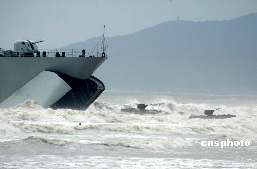 今天對(duì)參演的兩棲部隊(duì)來(lái)說(shuō),可不是個(gè)好日子。海上的風(fēng)力6到7級(jí),浪高2.5至3米,大雨。