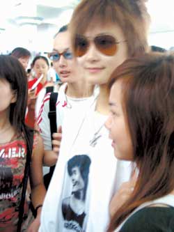 因?yàn)樵陂L沙和李宇春同住一個(gè)酒店,記者看見前天晚上11點(diǎn)多還有人在李宇春住的“金牛座”門口守著,他們打算徹夜守在這里。昨天早上6點(diǎn)15分左右,記者退房途經(jīng)李宇春的“金牛座”,門口卻看不到一個(gè)人影,本以為“玉米”們都扛不住了,誰知當(dāng)記者7點(diǎn)10分到達(dá)長沙機(jī)場時(shí),看到十幾個(gè)穿著黃色衣服的“玉米”手捧鮮花和禮物已經(jīng)等在機(jī)場大廳了。