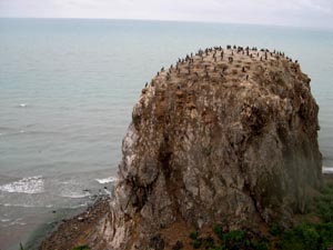 著名的青海湖鳥島由鸕鶿島和蛋島兩部分組成,每年春天,數(shù)以10萬計的普通鸕鶿、斑頭雁、棕頭鷗、魚鷗、燕鷗、大天鵝等十幾種鳥,從印度、盂加拉灣、恒河口、吉大港等地經(jīng)過數(shù)千公里的長途飛翔,成群結(jié)隊從南方飛來,棲居島上。它們各自選擇舒適的地方,筑巢安家,求偶產(chǎn)卵,孵育雛鳥,鳥群此起彼落,把島遮蓋得嚴嚴實實。圖為鸕鶿島東側(cè)的由一片懸崖峭壁組成的“鸕鶿城堡”。