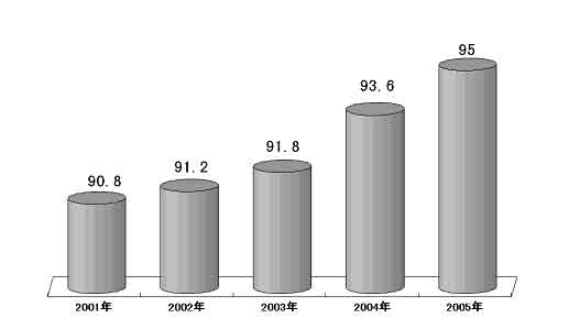 圖表七 “十五”期間全國義務教育人口覆蓋率 (單位:%)