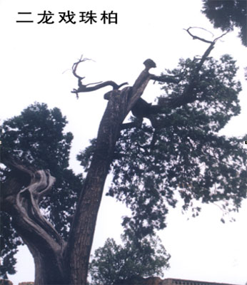 另外還有“猴子倒掛”、“干枝梅”“飛檐走壁”等古柏,個(gè)個(gè)形象逼真,姿態(tài)各異。