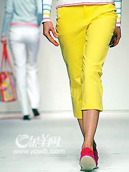 強調休閑的ESCADASPORT在本季大量使用的深藍色調中,用卷邊五分褲展現(xiàn)出一種制服誘惑,五分長度與耀眼銅扣共同書寫著都市女性的非凡個性。同樣是ESCADASPORT一款街頭風格的寬腿七分褲,褲腳被高高束起,亮粉的色彩與清爽的白色上衣最是相配,嫩黃七分褲則用粉紅便鞋帶出春天的味道。這樣的搭配,怎么穿都很青春。