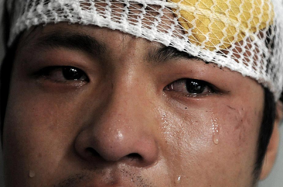 7月6日,新疆烏魯木齊友誼醫(yī)院,來(lái)自北京的小伙兒趙剛在病床上回想起昨夜的暴力事件泣不成聲。24歲的趙剛是專程來(lái)烏市看望女友的,在5日的暴力事件中被犯罪分子毆打成腦震蕩。中新社發(fā) 廖攀 攝