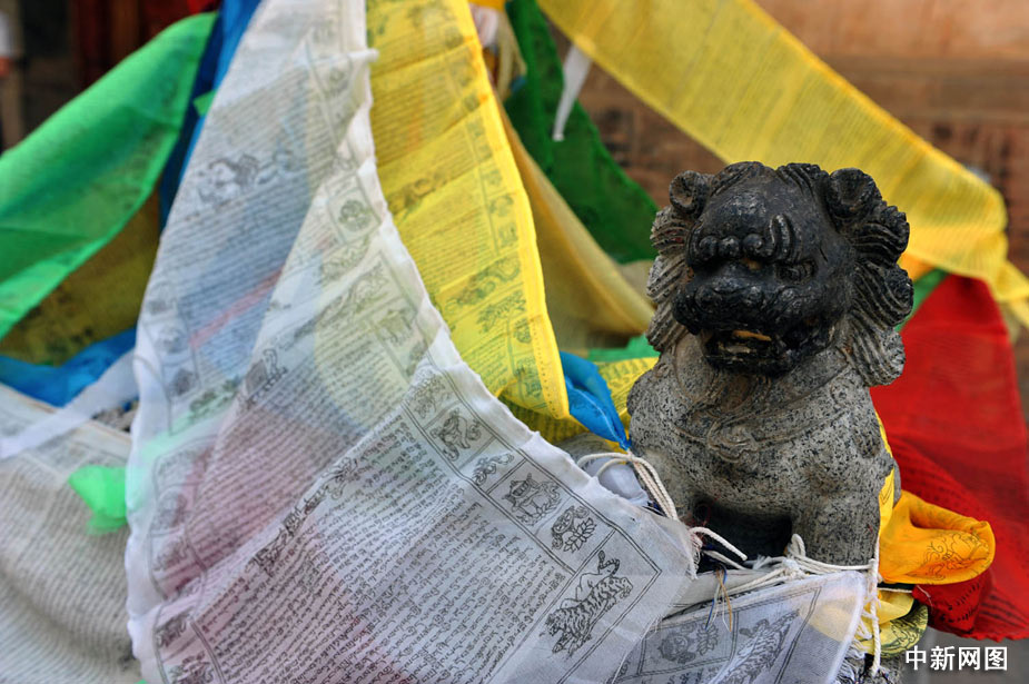 圖為寫滿經(jīng)文的彩帶。
