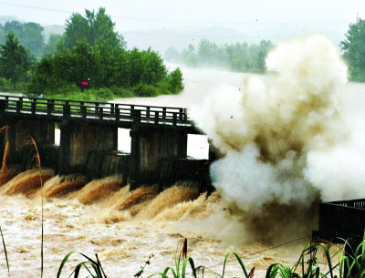 當(dāng)日,咸寧市咸安區(qū)馬橋鎮(zhèn)高賽水電站的攔水壩實施爆破泄洪。受強降雨影響,咸寧市南川水庫水位超過警戒線,水庫下游至馬橋鎮(zhèn)高賽水電站間部分地區(qū)出現(xiàn)內(nèi)澇。咸安區(qū)防汛指揮部決定爆破高賽水電站的部分?jǐn)r水壩,確保南川水庫及時泄洪。新華社發(fā)(鄧東峰攝)