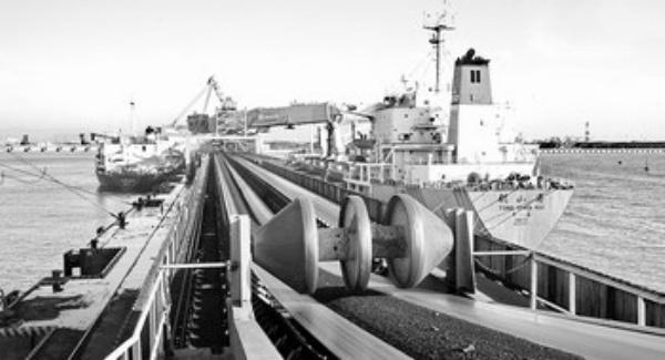 作為中國“北煤南運(yùn)”大通道,每天停泊在秦皇島港煤炭碼頭裝貨的輪船絡(luò)繹不絕。 新華社記者 楊世堯攝