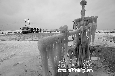 開闊地里,被當?shù)厝朔Q為“磕頭蟲”的采油機依然隨處可見。只是有些已經(jīng)永遠低下了它的“頭”,面對日益枯竭的油井以及這突如其來的海冰,我國第二大油田———勝利油田,在高油價中卻面臨著從未有過的嚴寒。