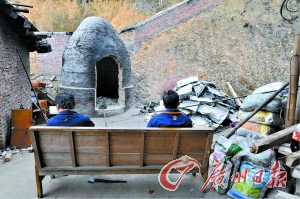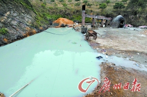 在靠山腳下的一排爐子前面,一個年輕小伙正在焚燒用黑塑料袋裝著的東西?吹接浾呱锨,一位操有粵西口音、年齡在40歲上下的老板模樣的人湊上前來!澳氵@是煉金嗎?”“不是煉金,搞點電鍍廠的廢水!庇浾呖吹接幸粋盛有金黃色液體的玻璃器皿放在一個鐵盆上。在雨棚一側(cè),還堆有幾十個藍、黑色的塑料桶,桶口均用塑料袋堵住后,再用蓋子蓋上的。