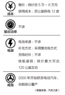 4月初,奇瑞汽車在其總部安徽蕪湖舉行了QQ3純電動汽車用戶交車儀式。奇瑞汽車總經理助理金弋波告訴《中國經濟 周刊》:“QQ3純電動轎車采用純電驅動,百公里耗電僅12度左右。目前該車已經順利通過國家安全碰撞測試,并已上榜工信部《節(jié)能與新能源汽車示范推廣工程推薦車型目錄》!