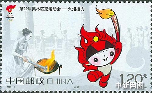 這套面值分別為1.2元、3元和6.3元,名為“點(diǎn)燃”和“傳遞”的紀(jì)念郵票,由著名郵票設(shè)計(jì)家王虎鳴設(shè)計(jì),“點(diǎn)燃”主圖以希臘古奧林匹亞遺址雅典女祭司點(diǎn)燃火炬為背景,手持奧運(yùn)火炬的福娃“歡歡”奮力向前奔跑為前景,表達(dá)了“點(diǎn)燃”的主題。而“傳遞”主圖的背景為世界最高峰珠穆朗瑪峰,前景為呈“祥云”狀熊熊燃燒、映紅了天幕的火炬。