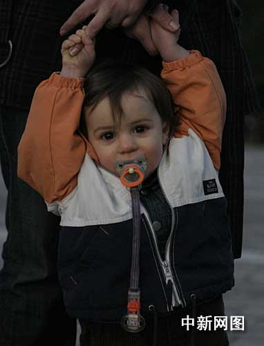 3月29日,北京奧運圣火傳遞到希臘首都雅典,圣火將在衛(wèi)城著名的帕特農(nóng)神廟前停留一晚。前來衛(wèi)城觀看圣火傳遞的比利時小游客剛滿一歲。 中新社記者 王歡