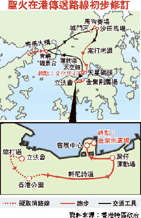周一凌晨警方的火炬跑路線測試后,發(fā)現(xiàn)有“超時”情況,加上為減低火炬被搶或弄熄的風險,有關(guān)單位計劃縮短某些不必要的行程,例如原定在港島的傳遞路線,是由立法會開始,然后經(jīng)遮打道、香港公園、軒尼詩道再去灣仔,但有關(guān)單位有意刪減兜入香港公園的地段。消息指出,香港火炬手仍會維持120人,但各人運送路程可能略作調(diào)整。