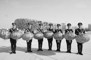 “好運北京”2008年中國游泳公開賽在國家游泳中心“水立方”拉開帷幕。盡管游泳館里的助威聲不絕于耳,但擔任場外警戒任務的官兵依然全神貫注地站在哨位上。討論中,說起當時的感受,在停車場執(zhí)勤的一級士官齊健說:“雖然我很想走進賽場觀看比賽,但我更清楚自己的職責。過些天,北京奧運會召開時,如果我依然被安排在場外執(zhí)勤,我會以更高的標準完成任務。守好自己的哨位,確保奧運安全,就是為國爭光!