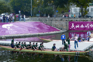 北京2008奧運(yùn)會火炬?zhèn)鬟f澳門站籌委會繼周六在市區(qū)實(shí)地測試后,北京奧組委、澳門奧委會、治安警察局、海關(guān)及澳門龍舟總會27日在西灣湖演練火炬龍舟傳送,進(jìn)一步加強(qiáng)各范疇溝通、協(xié)調(diào)能力。北京奧組委代表張惠清,蕭威利以及治安警察局副局長馬耀權(quán)27日到場觀察測試情況。