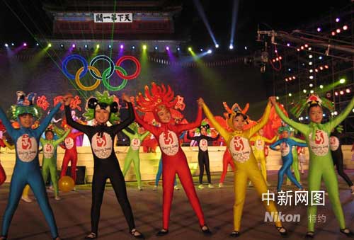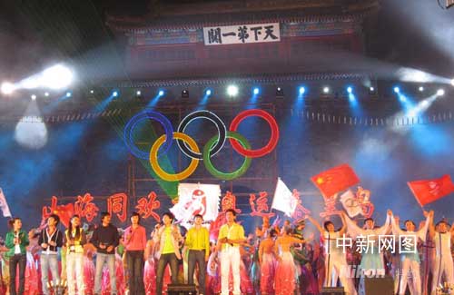 秦皇島民眾山海關(guān)前歡慶奧運倒計時一百天(圖)