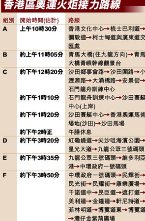 圖:香港區(qū)奧運(yùn)火炬接力路線。(圖片來源:文匯報(bào))