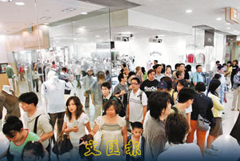 時(shí)代廣場(chǎng)推廣及廣告部經(jīng)理馬惟樂(lè)稱,一連3日的小黃金周,令該商場(chǎng)人山人海,人流明顯增加,相信生意額較去年同期上升8%至10%;人流則上升8%至10%。他續(xù)稱,北京奧運(yùn)熱潮影響,也帶動(dòng)售賣(mài)運(yùn)動(dòng)服飾的商鋪大旺。