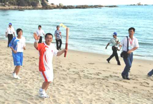 綜合新華社電奧運(yùn)圣火在三亞的傳遞路線(xiàn)被北京奧組委認(rèn)定“極具特色”。為體現(xiàn)三亞的椰林、海灘風(fēng)光,三亞的火炬?zhèn)鬟f方式除了長(zhǎng)跑外,還采用了沙灘跑步、三人自行車(chē)等特殊傳遞方式。