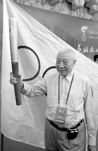 中新網(wǎng)5月11日電 在北京奧運圣火福州站傳遞出現(xiàn)了境內(nèi)圣火傳遞年齡最大的火炬手,他就是94歲高齡的歐椿堃。