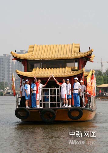 圖:奧運圣火在嘉興南湖進行水上傳遞