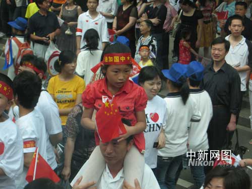 五月三十一日,奧運(yùn)火炬接力在武漢進(jìn)行,數(shù)十萬熱情的武漢市民從八方趕來,為奧運(yùn)喝彩,為中國加油。(作者 艾啟平)