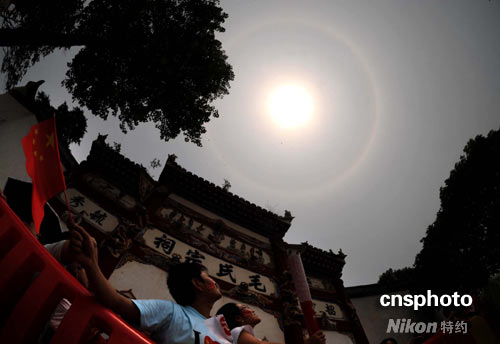 值得一提的是,在韶山的奧運(yùn)圣火傳遞結(jié)束之后,天空中的太陽出現(xiàn)了一圈光暈,非常美麗。日暈也吸引了大批觀看圣火的觀眾觀看,并嘖嘖驚嘆。