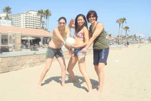 郎平和女兒、外甥女在沙灘打排球。圖片來自郎平博客